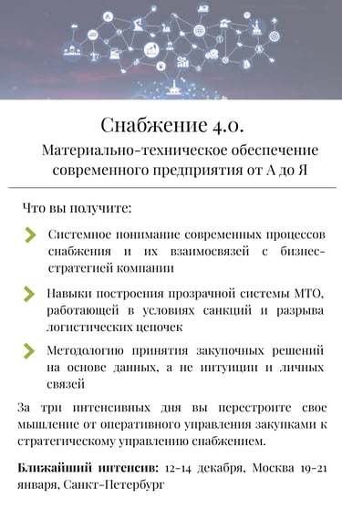 Мы непрерывно актуализируем существующие курсы и разрабатываем новые программы, отвечающие современным вызовам в управлении обеспечивающими функциями. Наши методики основаны на реальном опыте оптимизации процессов МТО, логистики и АХО в российских компаниях.