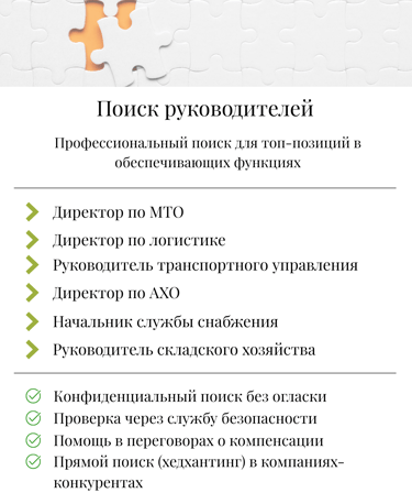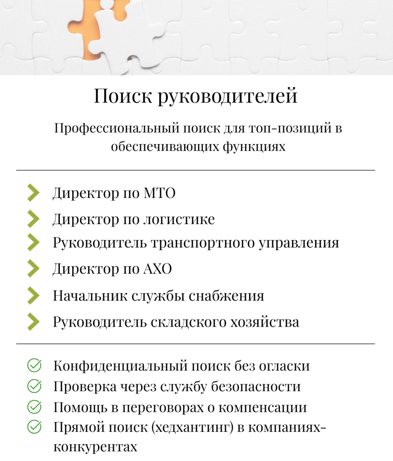 Находим специалистов для МТО, логистики, транспорта и АХО. От водителей до директоров. Знаем специфику обеспечения и особенности рынка труда Дальнего Востока. Без красивых обещаний — только результат.