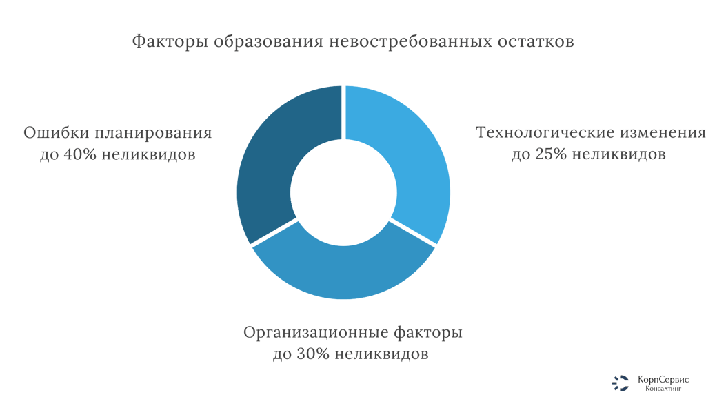 За годы работы в сфере снабжения крупных производственных компаний мной выделено три основные группы факторов, приводящих к образованию невостребованных остатков.