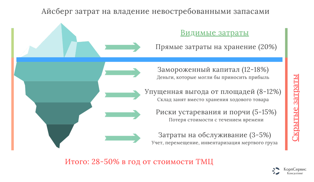 Многие руководители недооценивают реальную стоимость хранения неликвидов, учитывая только прямые затраты на аренду склада. На самом деле полная стоимость владения невостребованными остатками включает множество компонентов.